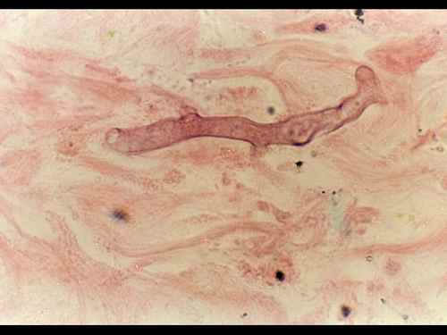 3.播散性毛霉病 毛霉可广泛地播散至肾、胃肠、心、脑,其中以肺部最常受累,且较难诊断。心脏受累者可在冠状动脉内发现厚壁的真菌形成栓塞。病原菌常从皮肤外伤处经血流波及其他器官。