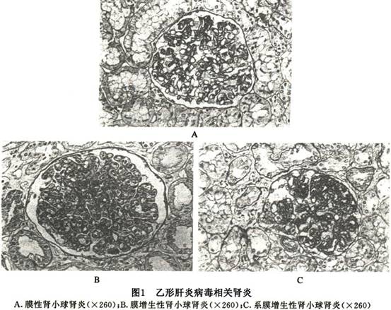 (3)在肾组织中证实乙肝病毒或其抗原的沉积(如能发现HBV-DNA或HBeAg提示乙肝病毒在肾组织中复制)。