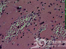 3.CT检查脑部显示有弥漫性密度增高区域,并累及灰质。脑部及脑脚间处的脑池间隙闭塞,大脑半球上部环绕中脑和蛛网膜空间的亚显微结构均消失。