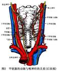 3.甲状腺下动脉是暴露神经的重要标志 首先从此动脉稍下开始向上解剖,至看清神经入喉处,再分离环状软骨外侧部的腺体组织。神经进入喉部的位置是最容易受损伤的部位,也是最容易出血的地方,在这个部位止血时须特别注意。