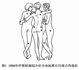 另一个所有病人都具有症状为广泛存在的压痛点,这些压痛点存在于肌腱、肌肉及其他组织中,往往呈对称性分布。在压痛点部位,病人与正常人对“按压”的反应不同,但在其他部位则无区别。