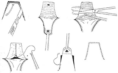 将瘘管切除后分层缝合,可经阴道或直肠修补。优点是手术简单,操作容易。缺点是复发率高,由于缝合时有张力,分离直肠或阴道组织分离不均,因此粘膜肌肉瓣要有充足的血液供应。