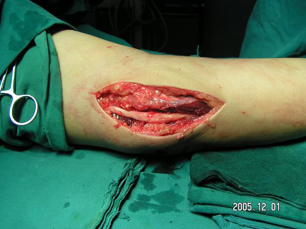 2.手术治疗 适用于保守治疗4~6周无效,或有手内在肌萎缩的患者。手术的方法可分为局部减压和神经前植两大类。局部减压分肘管原位切开减压和内上髁切除,因分别有尺神经前脱位、术后复发、肘关节不稳等缺点,现已很少应用。尺神经前植包括皮下、肌间、肌下前植三种。肌间前植因术后并发症少而应用最为广泛。