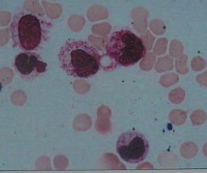 (2)血像:早期白细胞总数正常或偏低,随着病程进展逐渐增高,淋巴细胞增多,并出现异型淋巴细胞,血小板数下降。