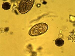 其病原是斯氏狸殖吸虫。成虫虫体窄长,两端较尖,中间略突起,略成梭形。虫体最宽处约在前1/3或稍后,大小为3.5~6.0mmⅹ11.0-18.5mm,腹吸盘位于体前约1/3处,略大于口吸盘。卵巢位于腹吸盘的后侧,其大小及分支情况与虫龄有密切关系,虫龄高者分支数多,形如珊瑚。位于体中后1/3处的睾丸呈分支状。睾丸2个,左右并列,分叶数变异较大,长度占体长的1/7~1/4,甚至可达1/3。虫卵椭圆形,不对称,大小不一致,卵壳厚薄不均,大小平均71ⅹ48mm,卵内含1个卵细胞和9~12个卵黄细胞。在不同地区、宿主等存在一定差异。