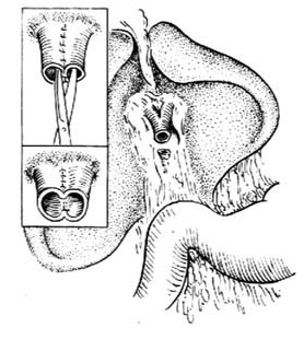 (2)手术基本原则:手术操作步骤应规范化,力争一次成功。有的学者强调病人的生命系于外科医生的一针一线是毫不过分的。不论采用何种术式,成功的修复必须符合以下原则:①胆管对胆管、或胆管对肠管的吻合应做到黏膜对黏膜;②吻合口足够大,无张力;③吻合口血供良好;④内置支撑管的时间应足够长;⑤肝下应常规置引流,并保持通畅,防止感染。