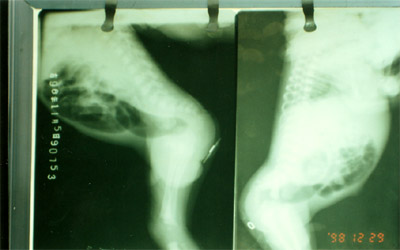 肛门发育正常,但出生后无大便,并伴肠梗阻征象。直肠指检向上受阻,有波动感。倒立位X线检查,若直肠有膜性膈为直肠闭锁,若直肠大段缺如为无直肠畸形,有时可伴无肛门畸形。