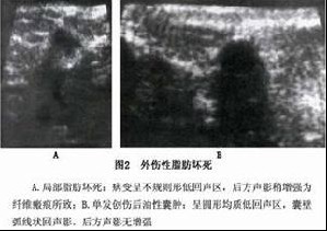 1.乳腺癌 乳癌的肿块多为不规则形,边界不清晰,少数呈球形或扁圆形,可出现乳头抬高、凹陷、指向改变,皮肤橘皮样改变,腋淋巴结常肿大。而乳房脂肪坏死肿块边界相对较清,肿块表浅,虽与皮肤有粘连,但与深层组织无关,也不会固着于胸壁,不会出现皮肤橘皮样改变,淋巴结偶有肿大。乳腺癌合并有乳房脂肪坏死,原发乳腺癌外伤后皮肤出血瘀斑而被误诊为脂肪坏死,经详细询问病史,证实肿块发生于乳房外伤之前,乳房皮肤同时伴有桔橘样水肿时,则利于乳癌诊断。