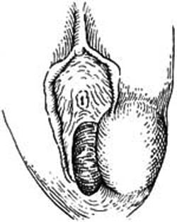 3.前庭大腺管损伤 个别病例可能由于分娩时,阴道、会阴外侧部裂伤和会阴侧切时损伤腺管或会阴侧切口愈合后发生较严重的瘢痕组织收缩导致前庭大腺管口阻塞形成囊肿。